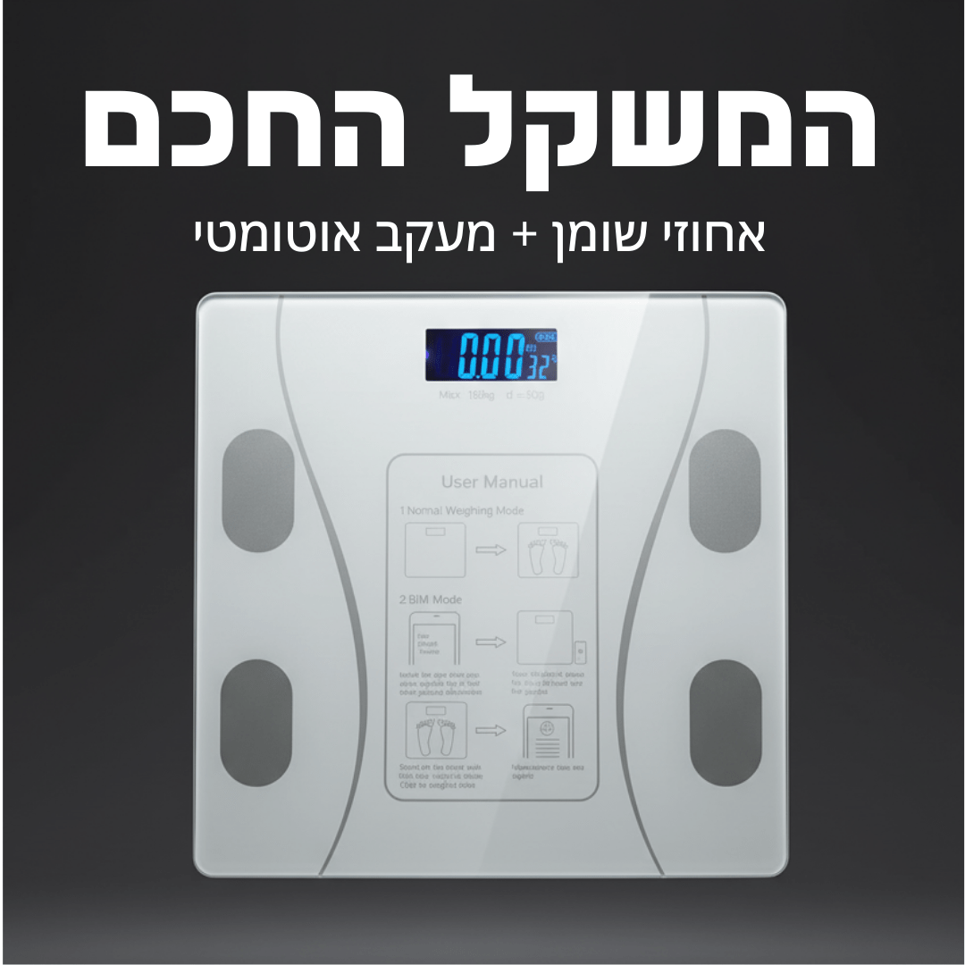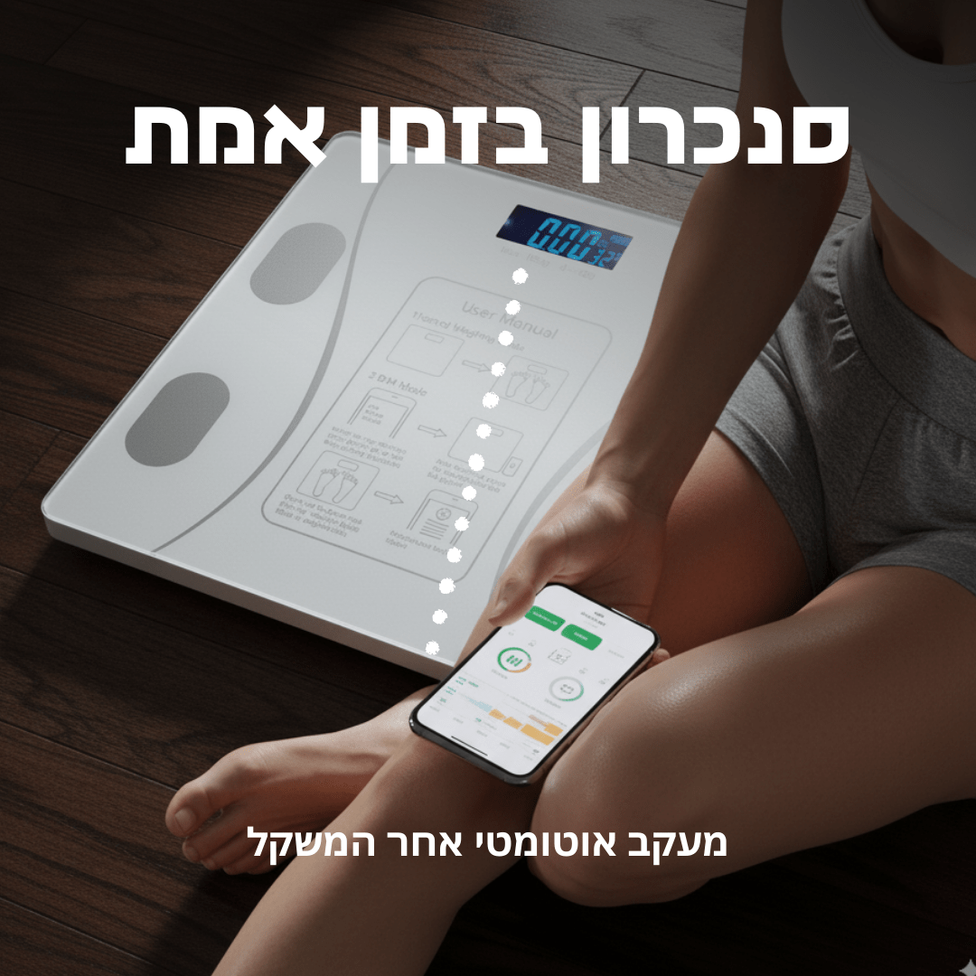 ⚖️ מודד לא רק משקל – כולל אחוזי שומן, שריר ומים בגוף.