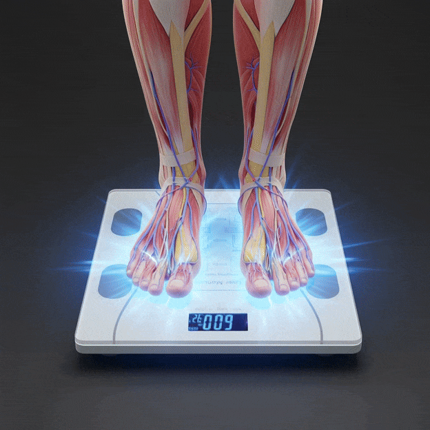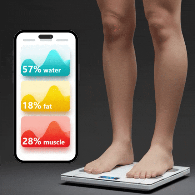 צריך למדוד את מה שבאמת חשוב: אחוזי שומן, מסת שריר ואחוזי מים בגוף. וזה בדיוק מה שהמשקל החכם עושה – בעזרת טכנולוגיית BIA מתקדמת, הוא שולח זרם חשמלי עדין ולא מורגש דרך הגוף; שריר ומים, שמוליכים חשמל בקלות בזכות הנוזלים והמלחים שבהם, מאפשרים לזרם לעבור, בעוד ששומן כמעט ולא מוליך. לפי רמת ההתנגדות שהזרם פוגש, המשקל יודע להפריד בין השומן, השריר והמים, ולהציג תמונה מלאה ומדויקת של הגוף שלכם – הרבה מעבר למספר אחד על הצג.